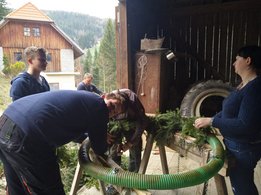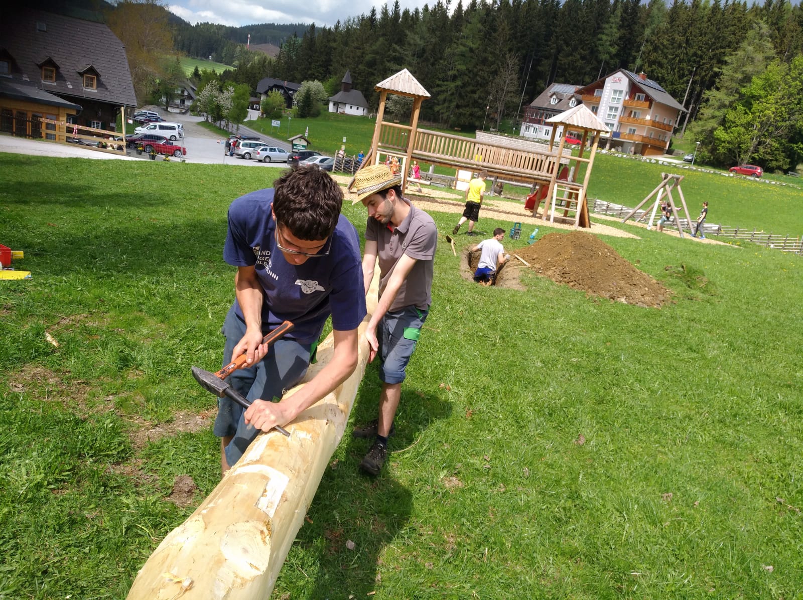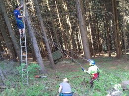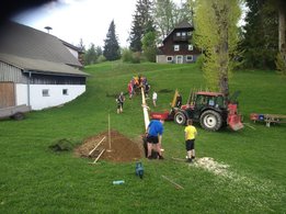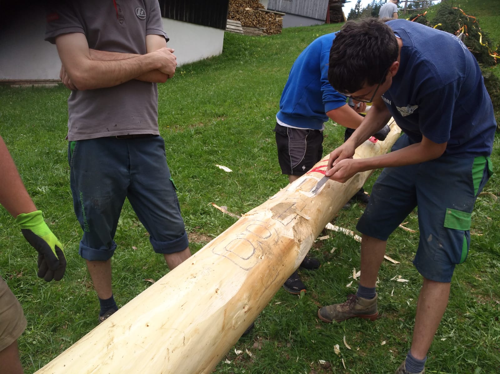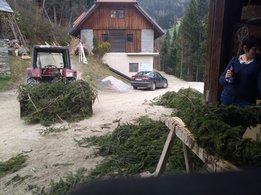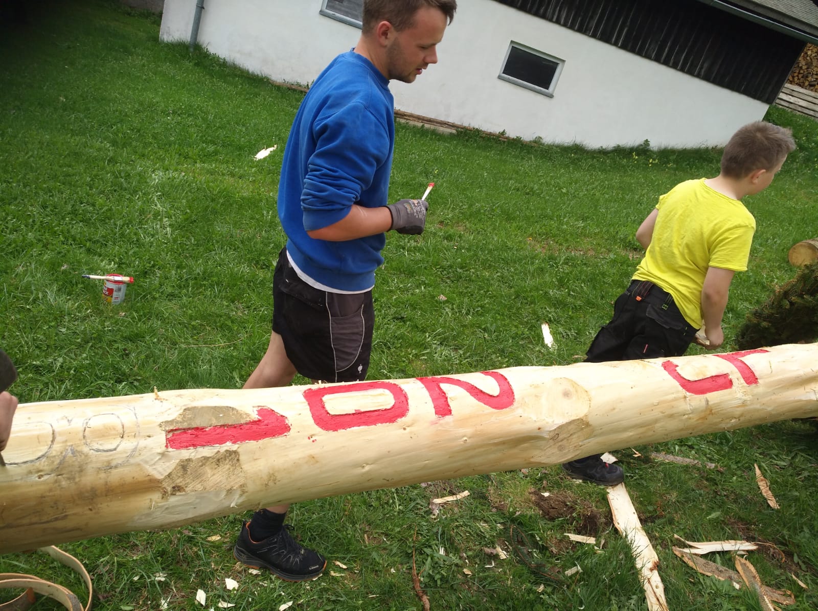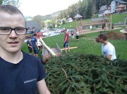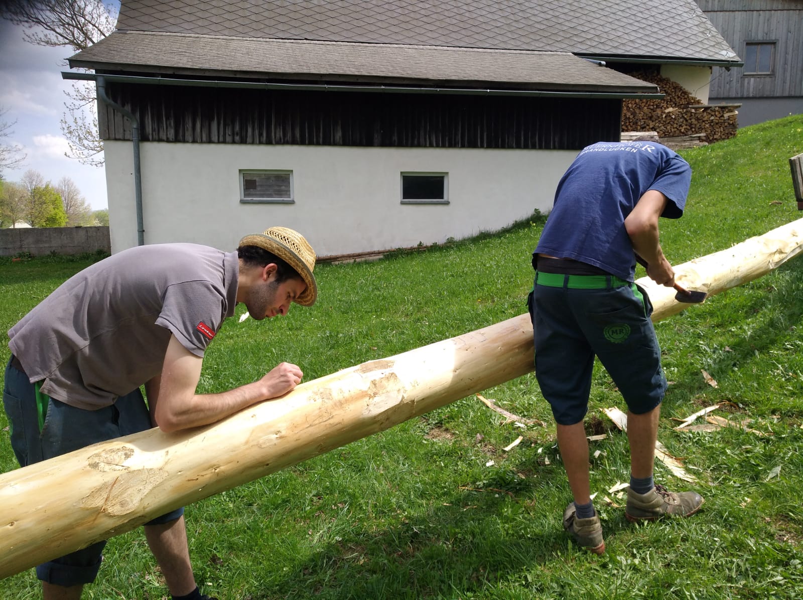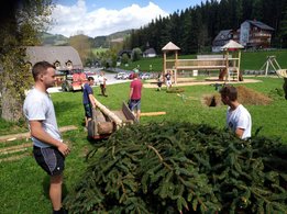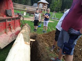 Er steht wieder. Diesmal wurde der Maibaum durch viel Muskelkraft, Schweiß und Fleiß von unseren Burschen und Mädls zum stehen gebracht. Wir fingen bereits am Vormittag zum arbeiten an. Ein Loch musste gegraben werden, der Baum musste noch aus dem Wald geholt werden und zum Schluss wurde der Baum noch geschmückt. Der Maibaumkranz wurde schon vorher bei Fam. Straußberger vlg. Stoana gebunden. Vielen Dank nochmal an die vielen Helfer die so tatkräftig mitgehalten haben.