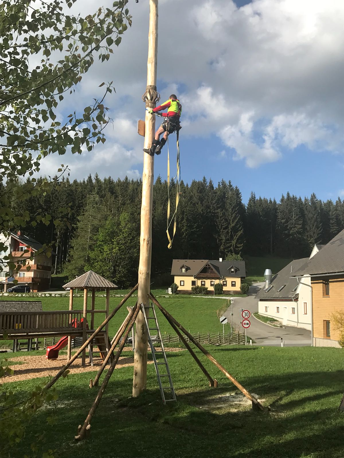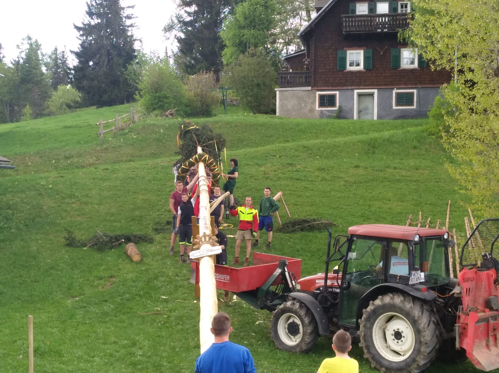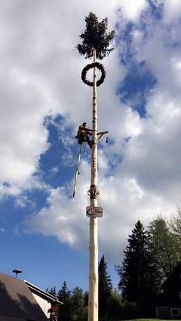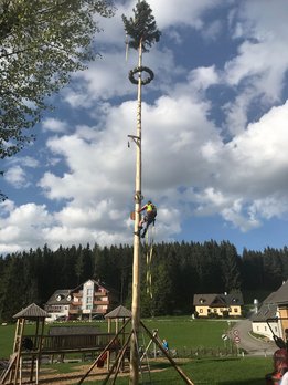 Der Maibaum steht wieder, Auf der Brandlucken beim Gasthaus Unterberger